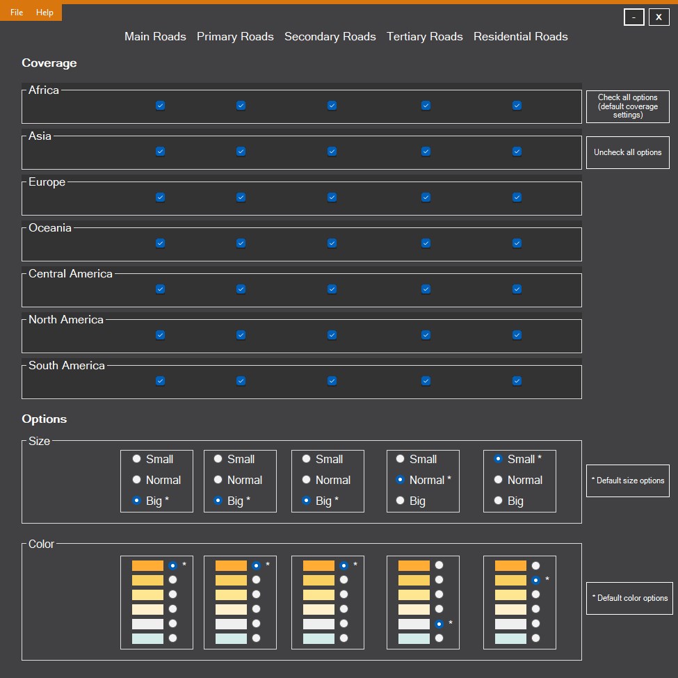 - 3D Lights based on OpenStreetMaps Roads information for Africa, Asia, Europe, Oceania, Central America, North America and South America.